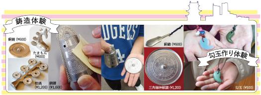 当センターでは鋳造体験と勾玉作り体験を実施します。参加を希望される方は内容をよく御確認の上、1月7日から専用フォームにて御申し込みください。