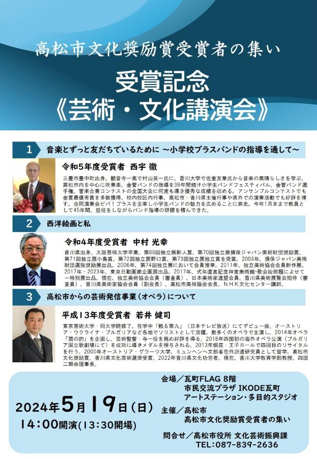 高松市文化奨励賞受賞者の集い 受賞記念《芸術・文化講演会》チラシ(PDF:346KB)
