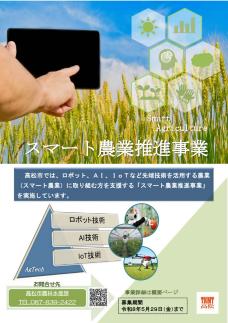 本市では、農作業の省力化や農作物の高品質化等を図ることを目的とした、ロボット、AI、IoTなど先端技術を活用する農業(スマート農業)への取組について支援する「スマート農業推進事業」を実施しております。
