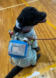同伴する盲導犬