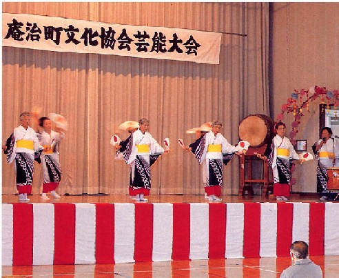 2本の扇を1本ずつ両手に持って踊り、扇の回し方に技法のある、珍しい踊りである。また、難しい踊りでもある。