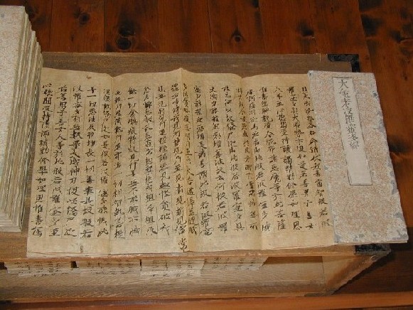 願成寺の宝物である大般若経600巻で、現在も春市の「読経」で使用されている。旧蔵は同町の桜八幡神社で、至徳・嘉慶年間(西暦1384~1389年)に別当となる満願寺の教祖らにより写経・奉納されたことがその奥書によってうかがえる。この中には、水主神社(東かがわ市大内町)の大般若経第31・37の2巻(応永6年(西暦1399年)奥書)が混じり、同社との関連が示唆される。水主神社の大般若経(重要文化財)については、最古の奥書には保延元年(西暦1135年)の年号をもつとともに、「牛負の大般若経」とも呼ばれる。「牛負」のいわれは、「伊予国石鎚社にあった大般若経を、牛の背に負わせ当社に運ぶ途中で2巻を失ったが、大般若経を背負った功徳により牛が人間に生まれ替わり、書写して補ったとされる」ことによる。