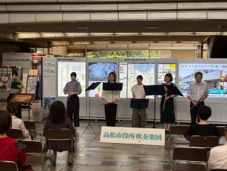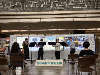 高松市役所本庁舎1階の市民ホールにて今年度2回目のフロアコンサートを開催しました。今回はフルートアンサンブルの演奏をお聴きいただきました。