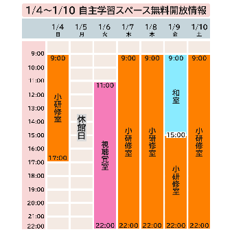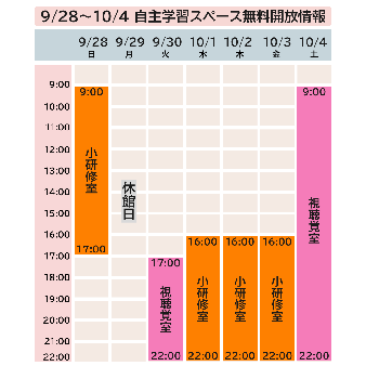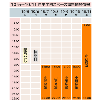 予約等の入っていない部屋を無料で開放しますので、日によってご利用いただける時間が異なります。