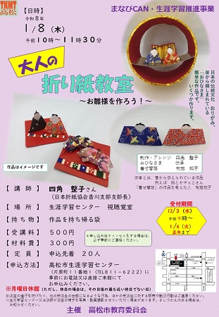 | 講師 | 四角 整子さん(日本折紙協会香川支部支部長) |