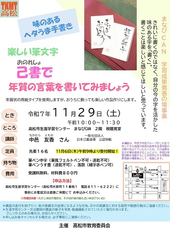 持参物 | 筆ペン中字(筆風フェルトペン不可・速乾不可)、筆ペンうす墨(速乾不可)、落款(細字赤ペン可) |