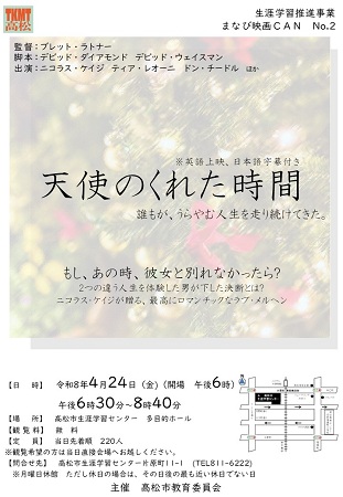 | 上映日 | 4月24日(金曜日)午後6時30分~8時40分(開場:午後6時) |