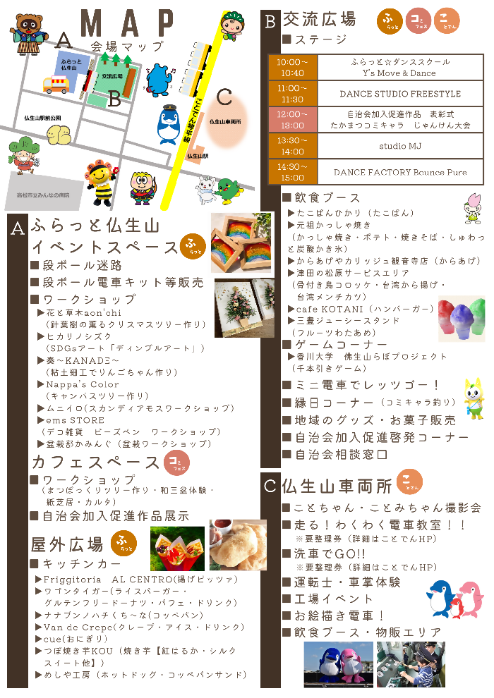 第24回ことでん電車まつり(外部サイト)」と同時開催となり、イベント当日はふらっと仏生山周辺で1日遊んで楽しめます。