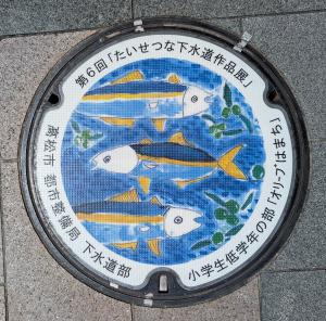 市内の小・中学生を対象とした、「令和6年度 第6回たいせつな下水道作品展」におけるマンホールふた絵画入賞作品の中から、高松市の魅力あふれる3点の作品がマンホールふたになりました!