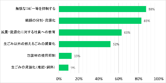 全体の約8割の事業者は「無駄なコピー等の抑制」、「紙類の分別・資源化」に取り組んでいます。