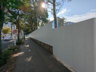 公園の周囲には仮囲いを設置し、安全を確保した上で、公園内部の施工を行っております。