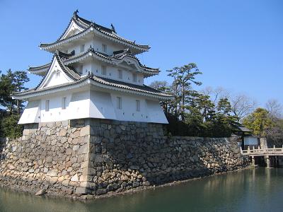 旭門を入ると南手に見える櫓が艮櫓(うしとらやぐら)です。3重3階の櫓で重要文化財に指定されています。古文書によると延宝5年(1677年)に完成した櫓です。艮(丑寅)とは北東の方向を意味します。本来は城の北東(東ノ丸)にありましたが、昭和42年に太鼓櫓台に移築されました。