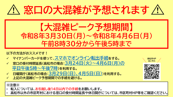 窓口が大変混み合い、長時間お持ちいただく状況となります。この混雑を緩和するため、市民課ほか関係