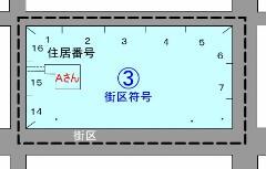 このように、街区符号(〇番)と住居番号(△号)によって住居を表します。