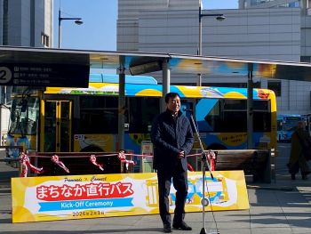 先日、「まちなか直行バスKick-off Ceremony」に参加し、挨拶をするとともに、テープカットを行ってまいりました。