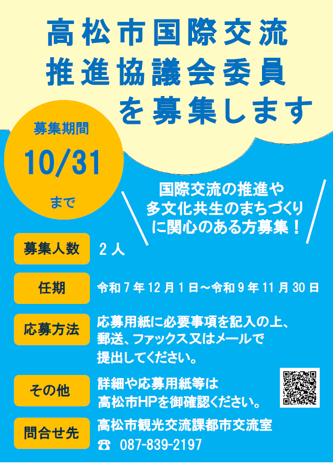 高松市国際交流推進協議会委員の公募のお知らせ