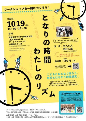 子どもと大人で探ろう、自分とは違う時間感覚⏰高松ワークショップLab.のメンバーと、時間と人とのつながりについて考えながら、ワークショップを一緒につくってみませんか…❓