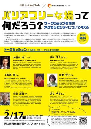 バリアフリーについて、現場にたずさわる登壇者のみなさんから話を伺い、現状や課題について知るとともに、これからについても意見を交わし、どのような人にとっても障壁のない社会づくりについてみんなで一緒に考えてみます。