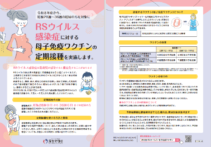 母子免疫RSウイルスワクチンは、出産の14日前までに接種することで、免疫が赤ちゃんに移行するとされています。
