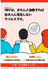 そこで、今年度の「世界エイズデー」キャンペーンテーマは、この「U=U」という言葉をより一層浸透させることで、もう一度HIVとエイズのことを皆で考えてみましょうというメッセージが込められています。ひとりでも多くの人がHIVとエイズのことを自分の事として捉え、HIVとエイズに関する検査や治療、支援などの知識を身につける契機とし、最新の知識の普及を通じて、HIV検査の受検促進や差別・偏見の解消につなげていきたいと考えています。