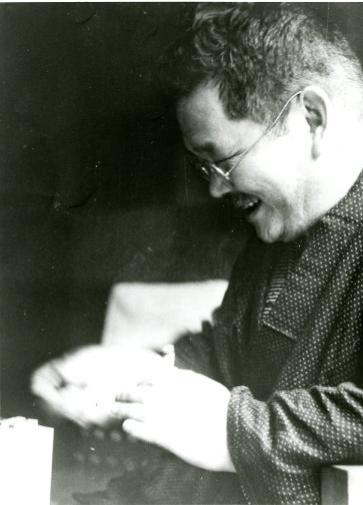 将棋盤を前に、笑顔の菊池寛
