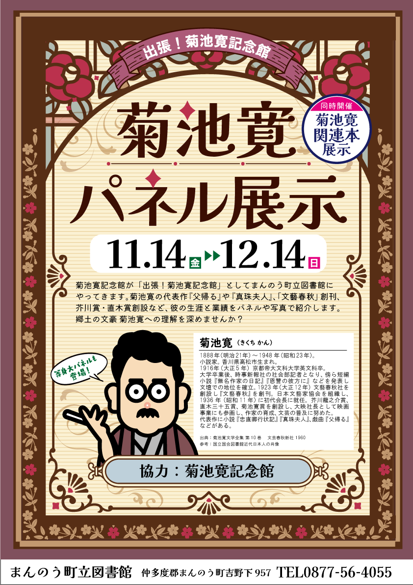 また、会場内にて「出張!菊池寛記念館」のパネル展示を行います。