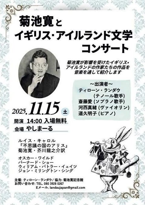 | やしまーる | 11月15日(土曜日)菊池寛とイギリス・アイルランド文学コンサート |