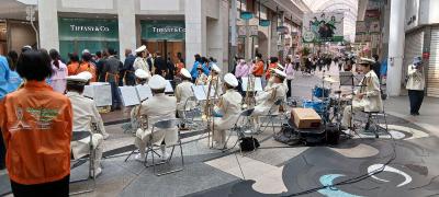 また、グッズ配布の時間には3曲を交互に演奏し、キャンペーンに参加した園児のみなさんや、商店街を行き交う方々と一緒に有意義なひと時を過ごすことができました。