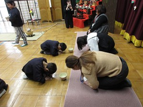 地域の方に教えていただき、お家の人に❝ありがとう❞の気持ちを込めたひなまつり茶会。 みんなの笑顔があふれていたね。