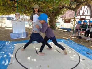 幼稚園の園庭や遊具で遊んだり、運動会ごっこや、お楽しみ会などの園の行事に参加したりして